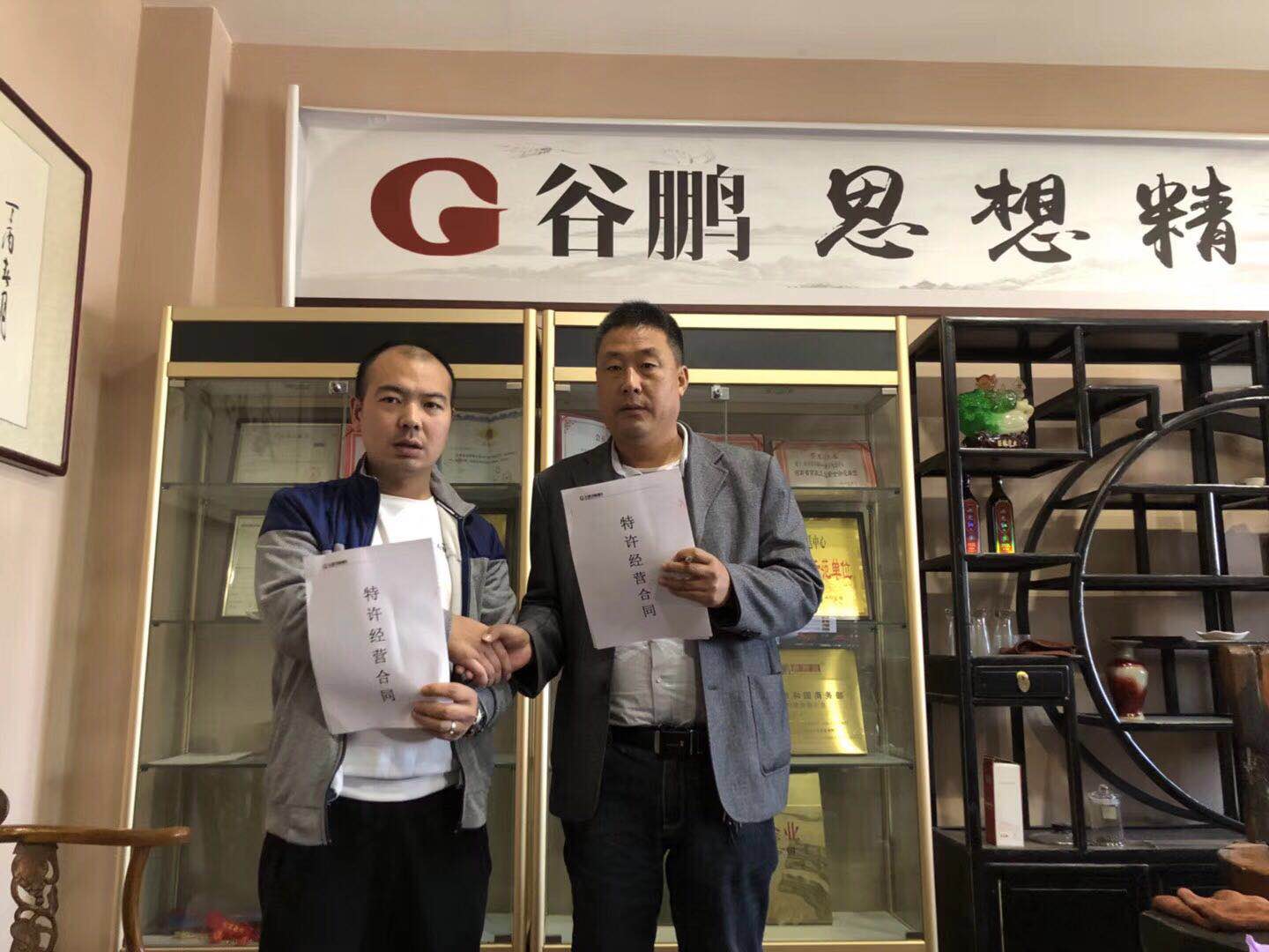 热烈恭贺濮阳市清丰县刘先生与谷鹏麻鸭面加盟签约成功,为将来谷鹏麻鸭面发展成全国知名品牌增加一份力量,为清丰县特色美食添加了浓浓的一笔。谷鹏餐饮连锁服务有限公司坚持加盟一家,扶持一家,成功一家,火爆一家的加盟方针,致力于加盟商可持续发展,力求加盟合作共赢。